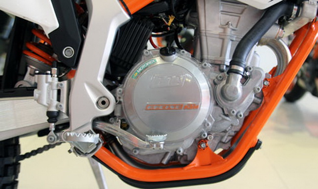 Chiếc xe được sử dụng động cơ bốn thì, xi-lanh đơn có dung tích 449,3 phân khối, làm mát bằng dung dịch. Khởi động điện, hộp số 6 cấp với bộ ly hợp ướt. Thắng đĩa Brembo. Giảm xóc mới trên EXC 450 Factory Edition gồm giảm xóc WP hành trình ngược (up-side-down) đường kính 48 mm trên bánh trước, dạng trụ đơn ở bánh sau. Chiều cao yên 970mm, bình xăng dung tích 9 lít, trọng lượng 111 kg.
