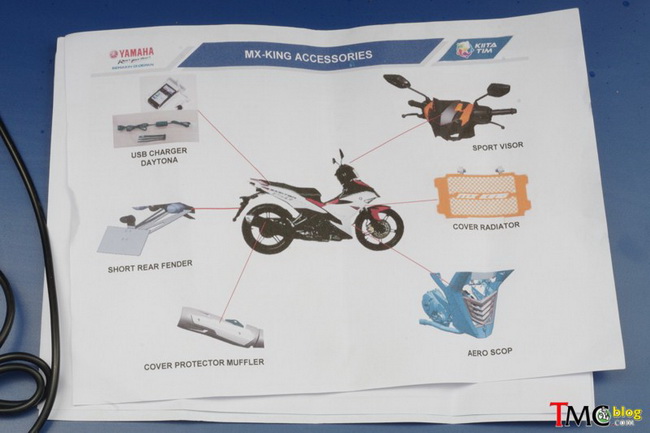 Thứ tư 18/03/2015 23:15 GMT+7Autopress.vn - Yamaha Exciter 150Fi vừa ra mắt tại Indonesia với cái tên Jupiter MX150/Jupiter MX King đã được công bố danh sách các phụ kiện chính hãng tùy chọn như sạc điện thoại USB, giá gắn bảng số thể thao, lưới bảo vệ két nước v..v