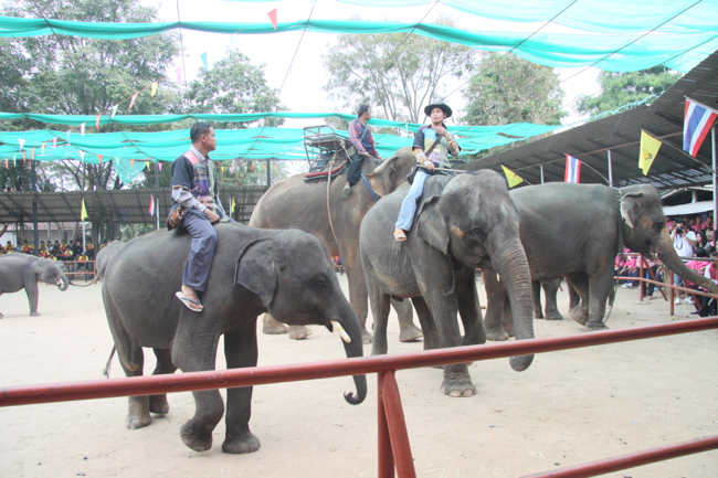 Đoàn đến tham quan làng voi, mỗi nhà ở đây đều nuôi 2-3 chú voi phục vu du lịch