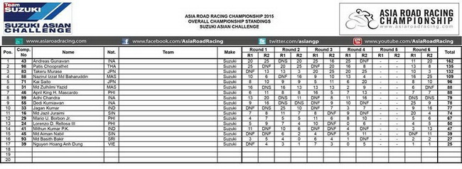 Chủ nhật 06/12/2015 10:08 GMT+7Autopress.vn - Autopress- Như vậy mùa giải đầu tiên của Suzuki Asian Challenge 2015 đã khép lại tại trường đua Quốc tế Chang -Thái Lan. Kể từ sau đợt kiểm tra kỹ năng vào tháng 3/2015 tại Malaysia, Việt Nam chính thức có tay đua đầu tiên được chấp nhận tham gia một giải đua mang tầm Quốc tế.