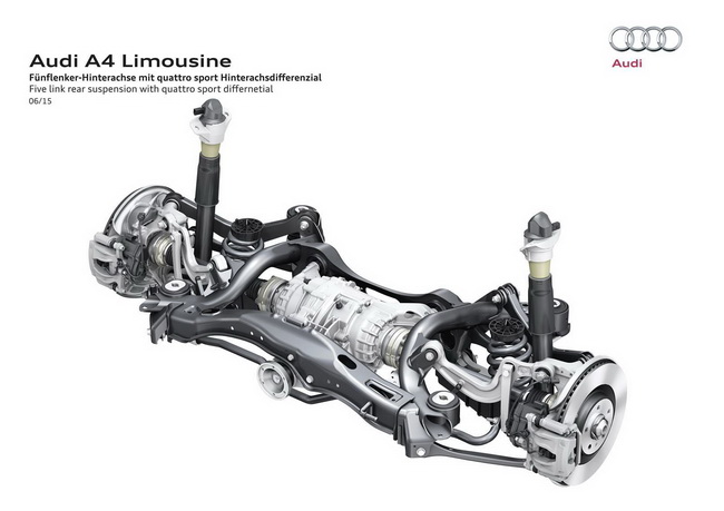 Hệ thống treo sau với năm điểm liên kết và khoá vi sai