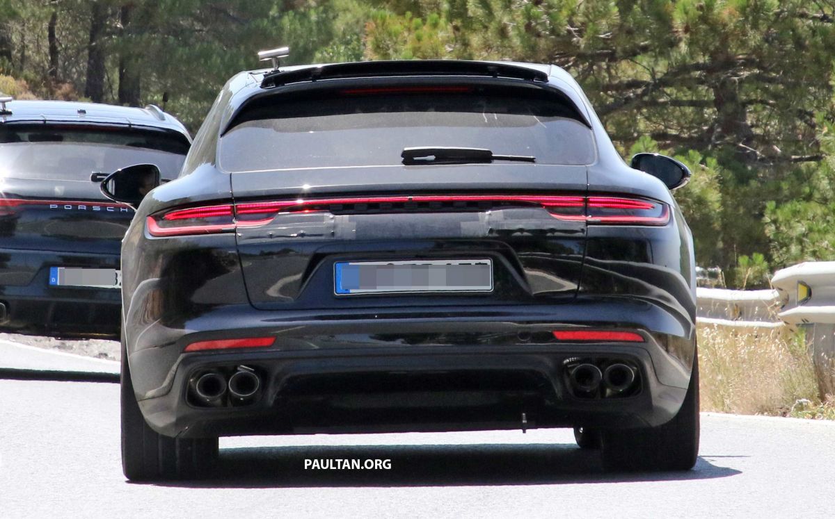 Nguyên mẫu chạy thử nghiệm trong lớp vỏ của Panamera Sport Turismo hiện hành, cụm đèn pha với 4 bóng đèn LED vẫn được duy trì từ thế hệ trước, cản trước thể thao như trên các phiên bản Turbo. Phía sau đuôi xe, cụm đèn hậu cũng được tái thiết kế. Cánh gió sau lớn hơn giúp tăng thêm 50 kg lực ép xuống mặt đường.