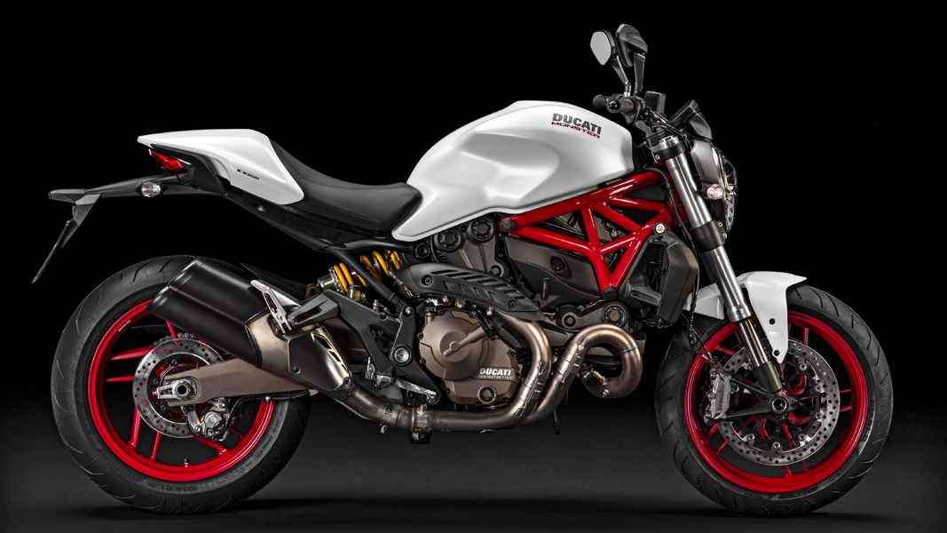 Monster 821: phiên bản thu nhỏ của Monster 1200 được biết đến như một biểu tượng của dòng Naked Bike bởi tính thời trang và sành điệu. Trang bị khối động cơ mới dung tích 821 cc cho công suất tối đa 112 hp và mô men xoắn tối đa 65.9 ft-lb trên trọng lượng chỉ 179.5kg khiến cho Monster 821 càng trở nên linh hoạt hơn bao giờ hết.