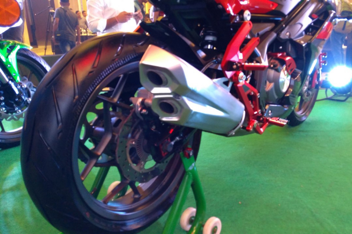 Ở phía trước, xe sử dụng phuộc up-side-down đường kính 41 mm, lốp 110/70 và phanh đĩa đôi 260 mm thiết kế dạng răng cưa. Phía sau là phuộc đơn monosock, lốp 150/60 và phanh đĩa đơn 240 mm. Mâm xe trước và sau đều có kích thước 17 inch. Điểm đặc biệt ở phiên bản cho thị trường Ấn Độ cũng như so với các đối thủ là xe được trang bị hệ thống phanh ABS cho cả hai bánh trước/sau.