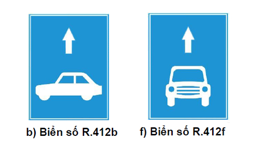 Biển số 412b chỉ đường dành cho xe con, biển 412f chỉ đường dành cho mọi loại ôtô nói chung.
