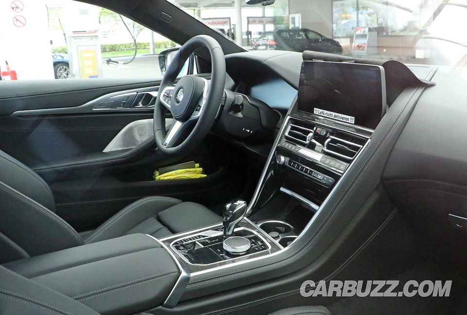 Và mới đây, trang CarBuzz tiếp tục đăng tải hình ảnh khoang nội thất được cho là của 8-Series Coupe mới sắp ra mắt. Theo đó, phiên bản mới này sẽ được nhà sản xuất trang bị màn hình thông tin giải trí kích thước lớn hơn phiên bản hiện tại đi kèm hệ thống iDrive mới nhất, Cụm màn hình công cụ vẫn là loại màn hình tốc độ thông thường.