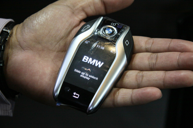 Trước đây chỉ mới xuất hiện trên BMW i8 và giờ là BMW Series 7, chìa khóa thông minh (BMW Display Key) hiện đang làm mưa làm gió khắp trên các diễn đàn về xe hơi. Đột phá công nghệ này cho phép chủ nhân cập nhật đầy đủ thông tin về tình trạng của xe, lượng xăng còn đi được, tình trạng dầu nhớt và thậm chí cho phép kích hoạt hệ thống điều hòa ngay trước khi bạn bước vào xe qua việc thao tác ở màn hình tích hợp trên chìa khóa.