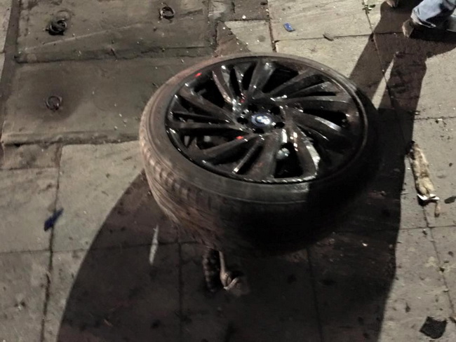 Mâm xe trước bên trái cũng đã lìa khỏi xe.