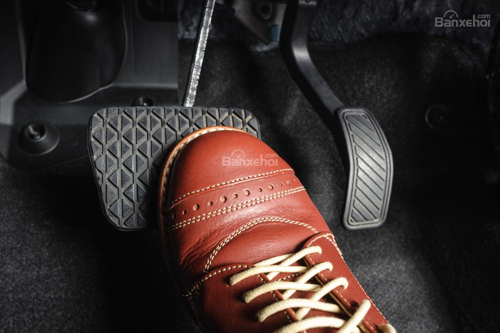 Lưu ý: Chỉ dùng chân phải để đạp phanh. Tiếp tục giữ chân trên phanh dù xe đã dừng hẳn.