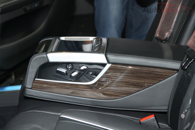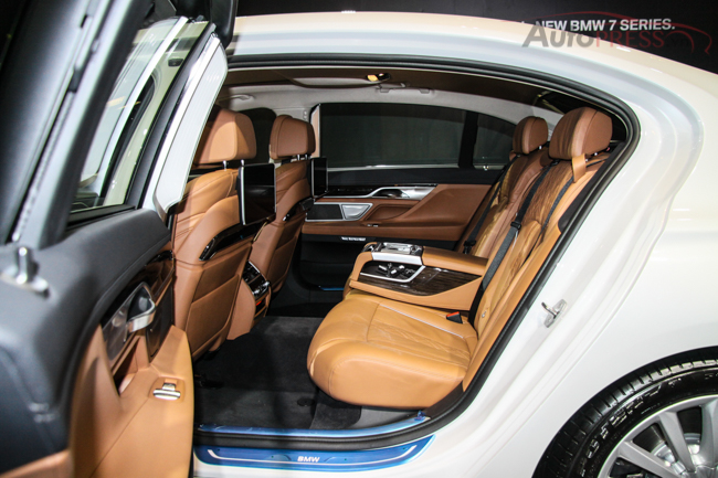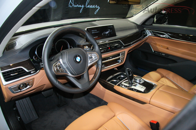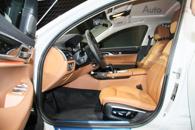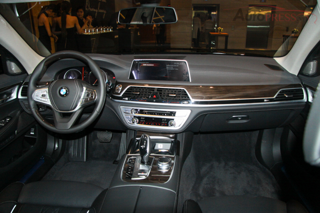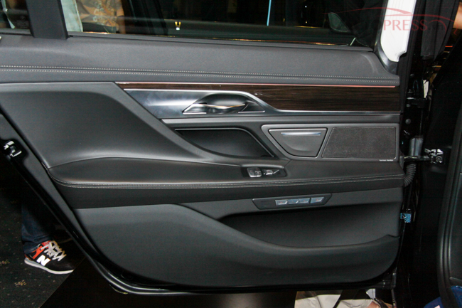 Tại Việt Nam, nội thất của phiên bản thân dài BMW 740Li hoàn toàn mới được trang bị cửa hít tự động. Ghế ngồi bọc da Dakota kèm chức năng thông hơi và massage cho cả ghế trước và sau.. Các chi tiết nội thất được trang trí bằng ốp gỗ quý Fineline và chiếc vô-lăng gỗ thiết kế mới được bọc da cao cấp, rèm che nắng cho hàng ghế sau. Hệ thống âm thanh thượng hạng Harman Kardon!