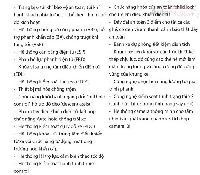 Hàng ghế sau rộng rãi với cửa gió riêng có thể điều chỉnh tuỳ ý, có thể gập lại để tăng dung tích chuyên chở hành lý chỉ với một nút bấm rất tiện dụng. Hệ thống giải trí của xe là màn hình cảm ứng trung tâm 7 inch, đầu CD 6 đĩa, kết nối AUX, dàn âm thanh 8 loa v..v