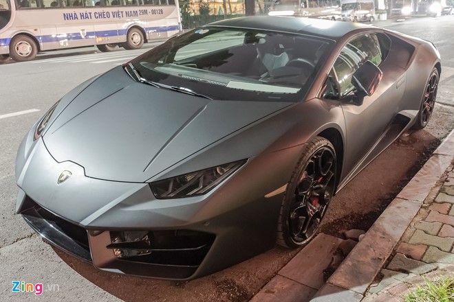 Chủ nhật 15/01/2017 20:00 GMT+7Đây là siêu xe Lamborghini Huracan LP580-2 đầu tiên được đưa về Việt Nam. Nguyên gốc siêu bò này mang màu sơn đỏ, song chủ xe đã đổi màu sơn toàn bộ bằng lớp decal đen mờ.