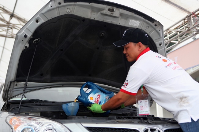 Bước 6: Shell Việt Nam kiểm tra, tư vấn về dầu nhớt dựa vào độ tuổi của xe, thói quen sử dụng xe và yêu cầu vận hành. Shell cũng giúp khách hàng tiếp cận với những dòng sản phẩm cao cấp, thân thiện với môi trường nhờ áp dụng công nghệ mới PurePlus duy nhất từ Shell; đặc biệt thay hoặc tặng nhớt miễn phí cho toàn bộ xe của khách hàng