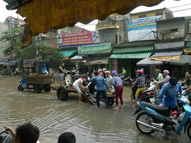 Sáng 25/5, cơn mưa kéo dài khiến nhiều tuyến phố ở Hà Nội bị ngập lụt nghiêm trọng, nhiều nơi nước ngập đến gần 1m. Xe máy, ô tô thi nhau chết máy giữa đường khiến nhiều người phải cứu viện khẩn cấp.
