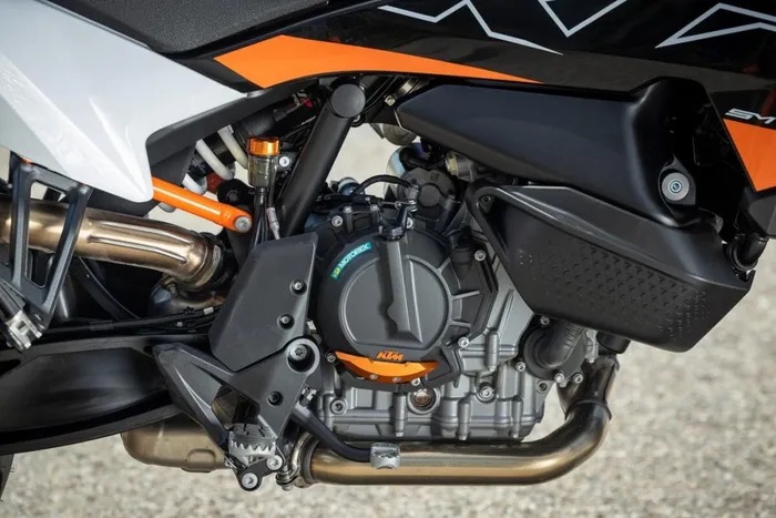 Lấy 890 Duke R làm cơ sở, KTM 890 SMT được trang bị động cơ đôi song song LC8c có dung tích 899cc. Động cơ này sản sinh công suất tối đa 105 mã lực tại 8.000 vòng/phút và mô-men xoắn cực đại 100 Nm tại 6.500 vòng/phút. Đi kèm là hộp số 6 cấp và bộ ly hợp chống trượt.