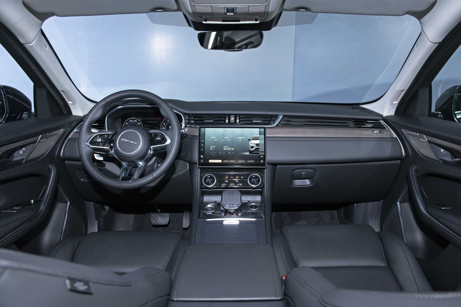 Mặt loa của hệ thống giải trí được khắc laser và núm xoay điều khiển chế độ lái JaguarDrive Control bằng kim loại thể hiện sự tỉ mỉ đến từng chi tiết, ghế trước được bọc da Windsor, vô lăng, cần số, ốp cửa tất cả đều được thiết kế mới giúp khoang nội thất sang trọng và hiện đại hơn.