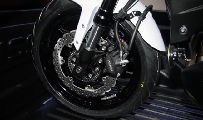 Ngoài ra, xe được trang bị phanh đĩa kép 300 mm trước, má phanh 2 piston. Đĩa sau 250 mm, rộng hơn loại 220 mm trước đây. Đi kèm là hệ thống chống bó cứng phanh ABS.