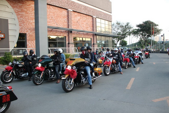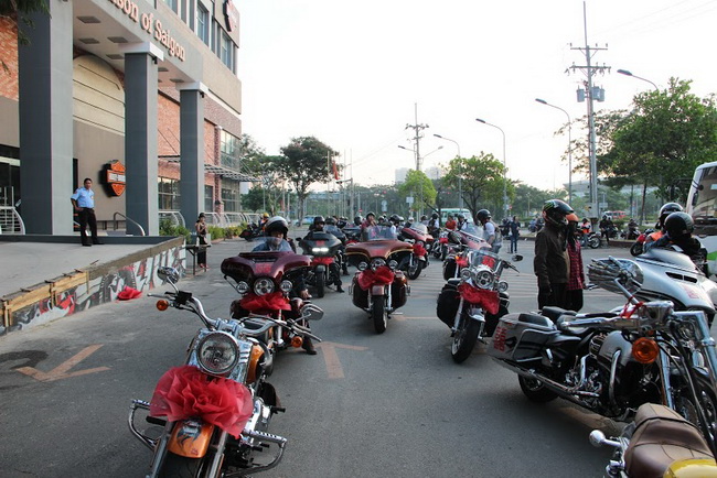 Thứ năm 21/01/2016 01:04 GMT+7Trước khi di chuyển tới địa điểm rước dâu, các thành viên tham gia rước dâu tập trung tại Showroom Harley-Davidson Sài Gòn để được phổ biến chương trình của đoàn khi di chuyển.