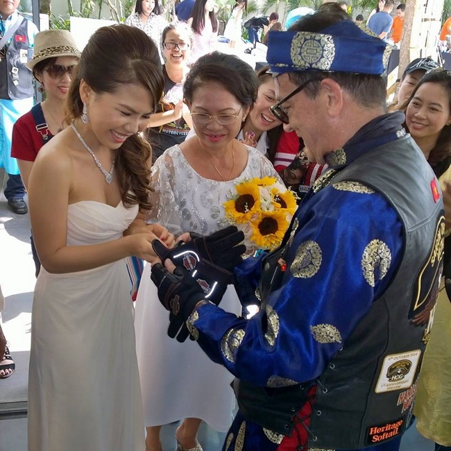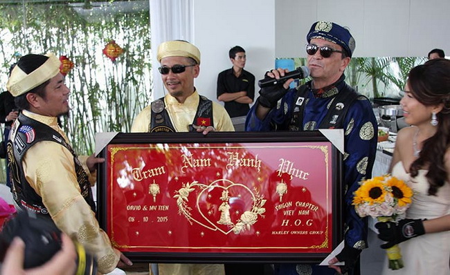 Món quà kỉ niệm của H.O.G Sài Gòn gửi tặng đến chú Rể David Wicker & cô dâu Mỹ Tiên.