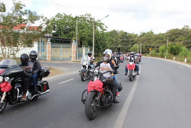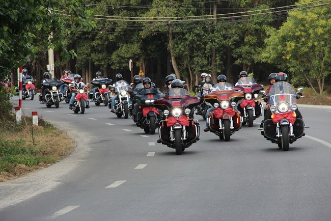 Đoàn rước dâu hội tụ đủ các mẫu xe của thương hiệu Harley-Davidsion từ những chiếc Touring cao cấp đến những chiếc Sporster thể thao.
