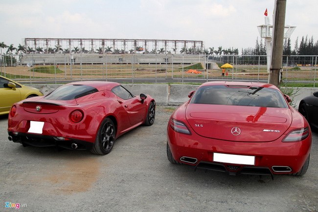 Những chiếc xe màu đỏ nổi bật của câu lạc bộ gồm Mercedes SLS AMG nhập khẩu chính hãng giá trên 10 tỷ đồng hay Alfa Romeo 4C Launch Edition độc nhất Việt Nam.