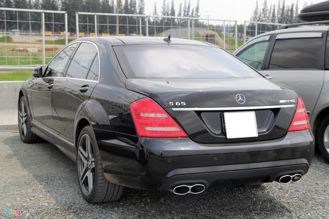 Một chiếc Mercedes S65 AMG đi cùng đoàn. S65 AMG là chiếc sedan mạnh nhất, đắt tiền nhất của Mercedes. Tại Việt Nam, phiên bản mới của dòng xe này được bán giá 12,8 tỷ đồng.