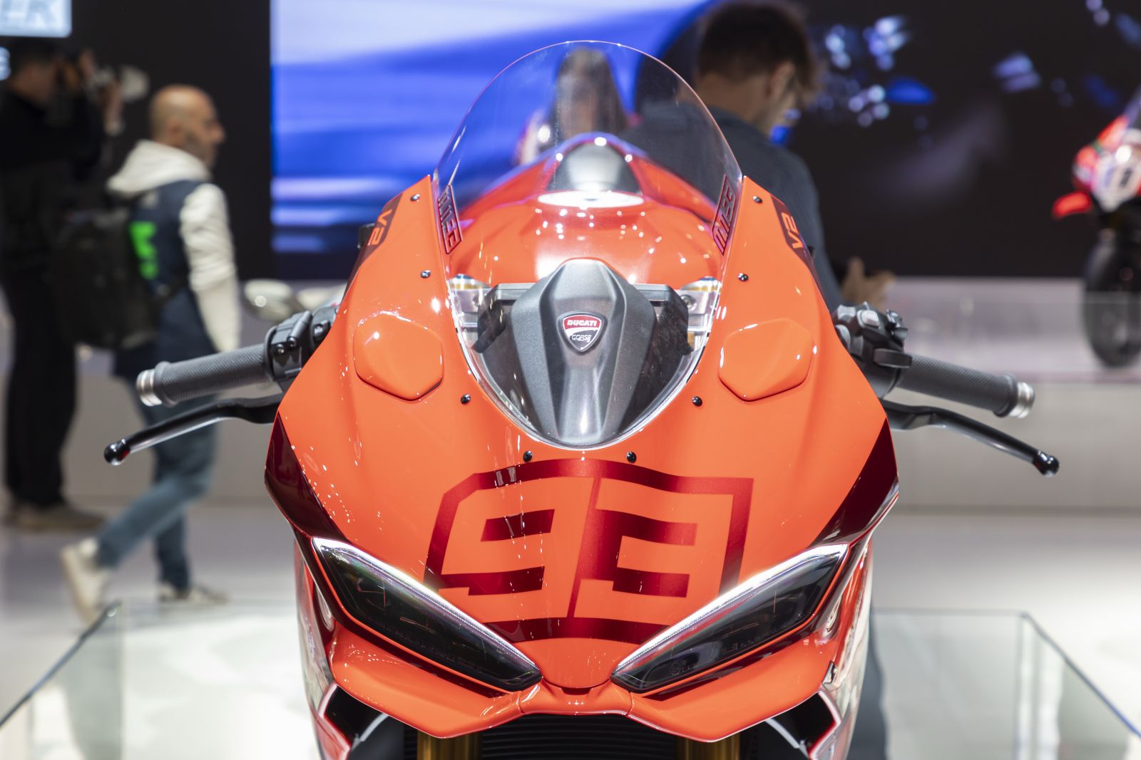 Phiên bản Panigale V2 MM93 được thiết kế lấy cảm hứng từ bộ tem mà Marc Márquez sử dụng trong buổi thử nghiệm đầu tiên cùng Ducati – khoảnh khắc đánh dấu bước ngoặt “todo rojo” (toàn đỏ) trong sự nghiệp của tay đua Tây Ban Nha. Bộ tem nổi bật với số hiệu 93, cùng logo MM93 trên yếm xe và tên mẫu, tái hiện tinh thần máu lửa đặc trưng của Márquez khi khoác lên mình màu áo đỏ Ducati.