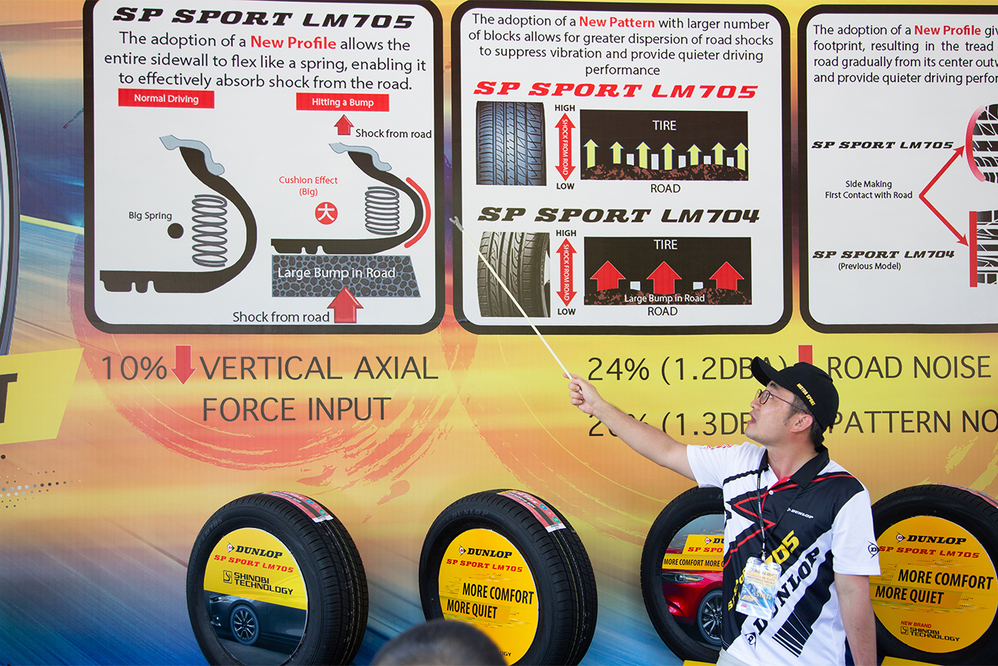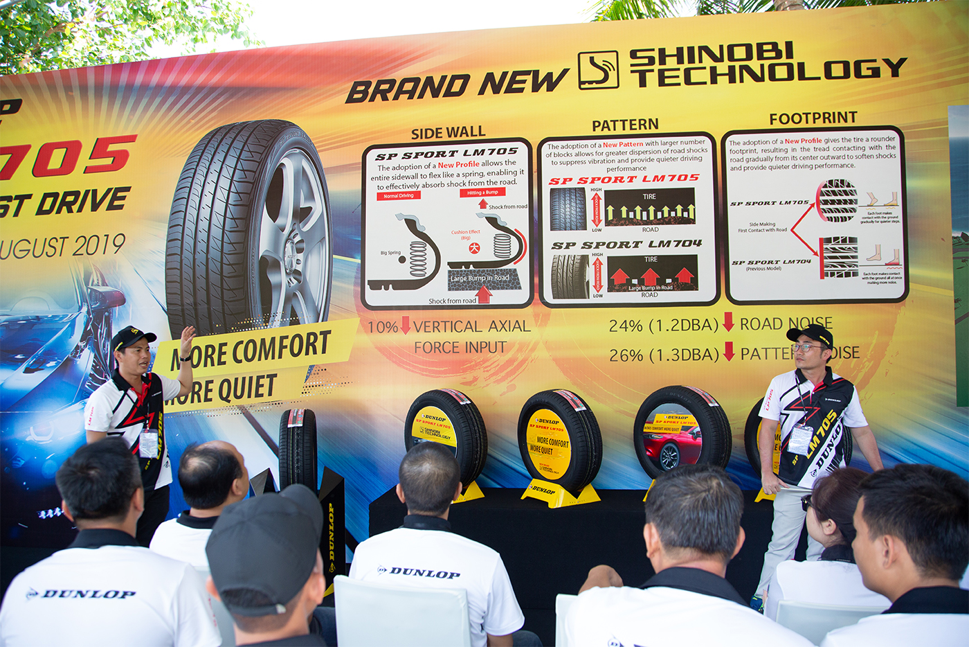 Tại sự kiện ra mắt, ngoài việc được trực tiếp nghe chuyên viên của Dunlop giới thiệu về các đặc tính của dòng lốp mới khách mời sẽ trực tiếp trải nghiệm thực tế tính năng ưu việt của SP Sport LM705 trên các đoạn đường test bố trí sẵn.