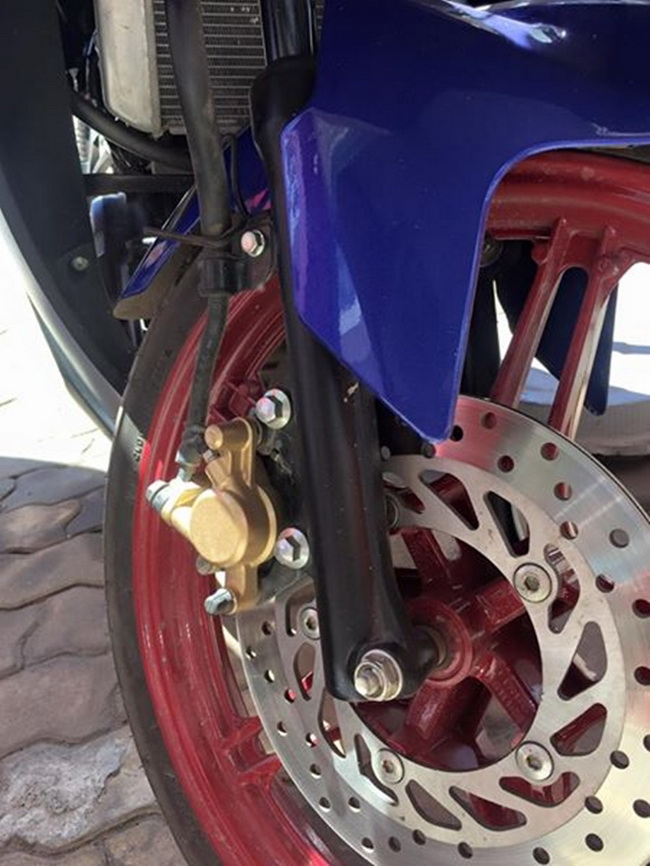 So với nguyên bản, bình xăng đã được chuyển đổi từ yên qua phần bình xăng lớn phía trước, yên xe cũng được độ 2 tầng cho phù hợp với bộ vỏ có một không hai này. Dàn chân xe sử dụng cặp mâm 5 chấu kép của Yamaha Exciter 150 và sơn thành màu đỏ, ngoài ra chiếc xe còn được độ loại pô thể thao nhìn khá hầm hố.