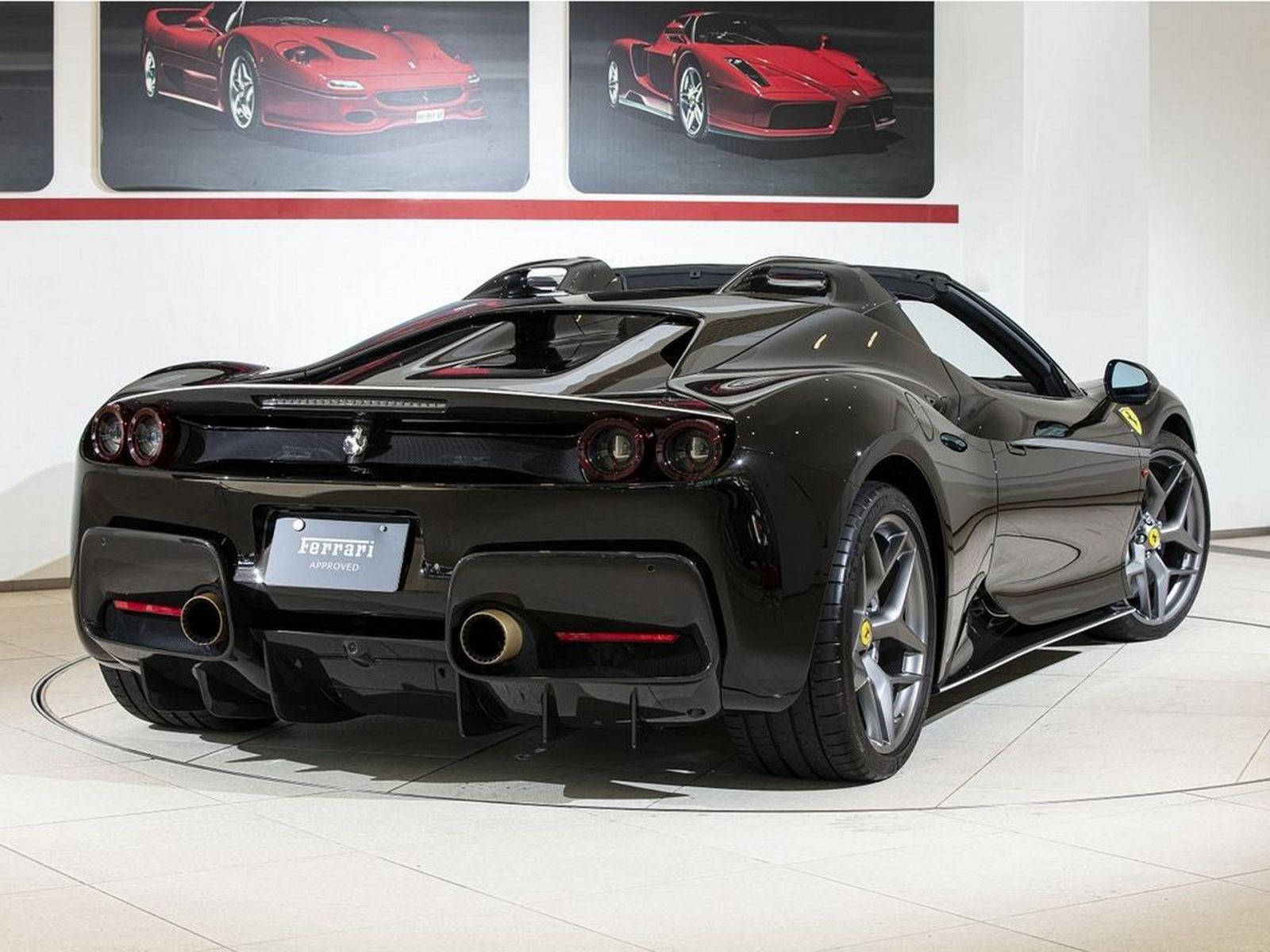 Chiếc J50 đang được rao bán bởi Rosso Scuderia, đại lý của Ferrari ở Tokyo. Siêu xe này có ngoại thất màu đen Nero Daytona. Nội thất cũng được bọc Alcantara màu đen và bổ sung thêm các chi tiết làm từ carbon tạo điểm nhấn.. Trong khi đó bộ mâm Grigio Corsa cùng logo ngựa chồm màu vàng biểu tượng Ferrari tạo sự nổi bật tương phản.