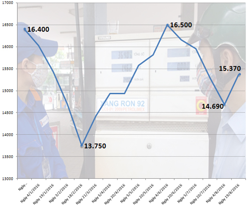 Đây là lần tăng giá xăng thứ 5 kể từ đầu năm và lần tăng đầu tiên sau 4 đợt giảm giá liên tiếp kể từ tháng 6/2016. Như vậy, sau 9 lần điều chỉnh (5 tăng, 4 giảm), giá xăng hiện thấp hơn 1.030 đồng một lít so với đầu năm.