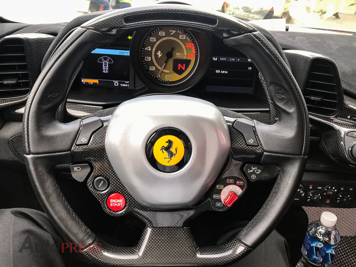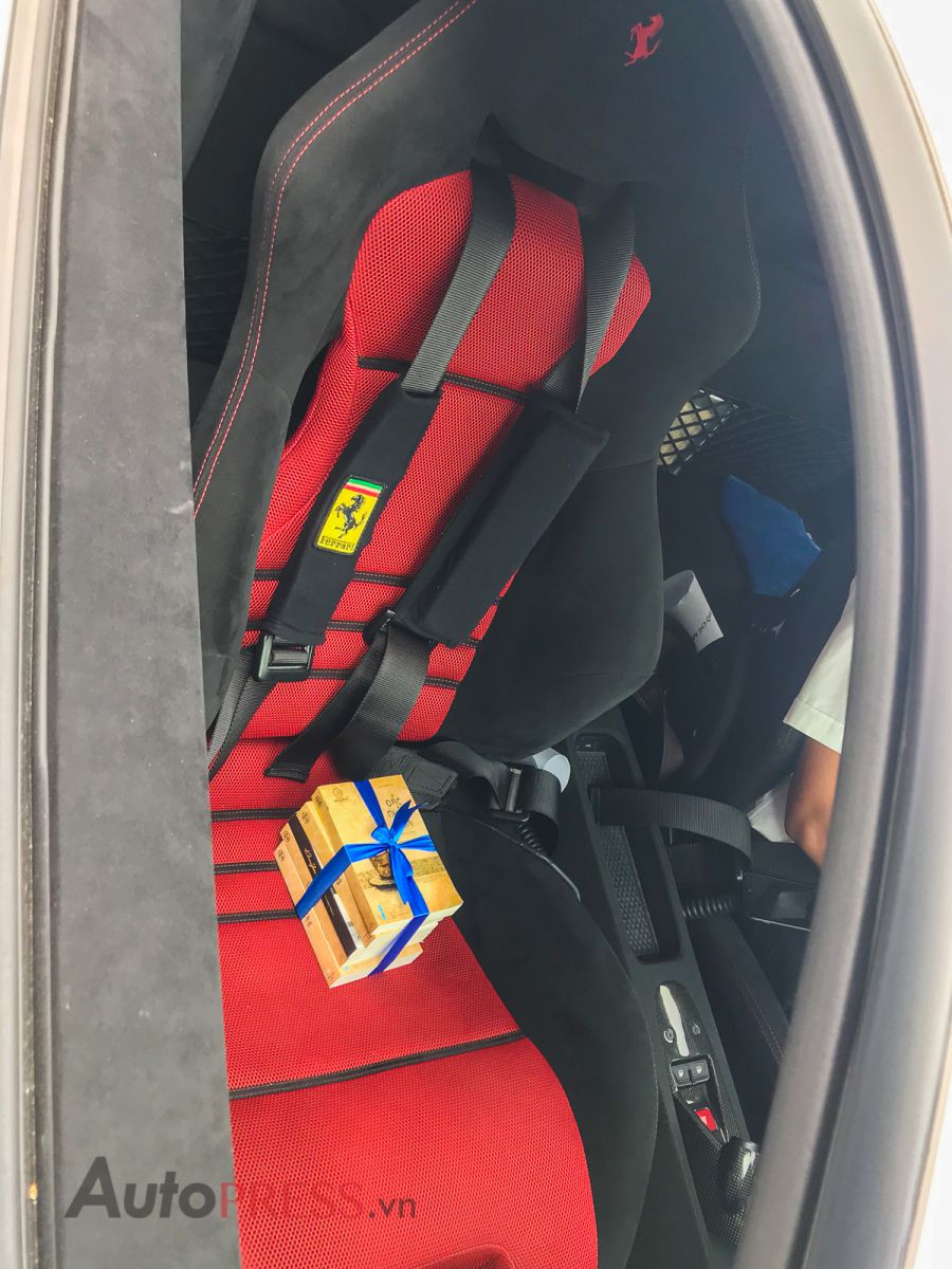 Bên trong khoang lái của Ferrari 458 Speciale độc nhất vô nhị tại Việt Nam có nội thất 2 tông màu đối lập là đỏ và đen. Ferrari 458 Speciale có dây an toàn theo kiểu xe đua. Và để giảm trọng lượng của xe, hãng siêu xe ý đã trang bị cho Ferrari 458 Speciale nhiều chi tiết nội thất cabon như: vô lăng, thành cửa 2 bên, bảng điều khiển trung tâm, bệ điều khiển cần số và lẫy chuyển số.