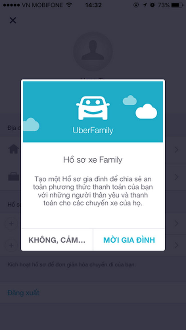 • Cập nhật ứng dụng Uber phiên bản mới nhất và lựa chọn “Hồ sơ Gia đình” là phương thức thanh toán mặc định.