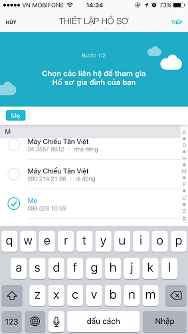 • Ấn “Tạo Hồ sơ Gia đình” và chọn những người trong danh bạ bạn muốn thêm vào “Hồ sơ Gia Đình”