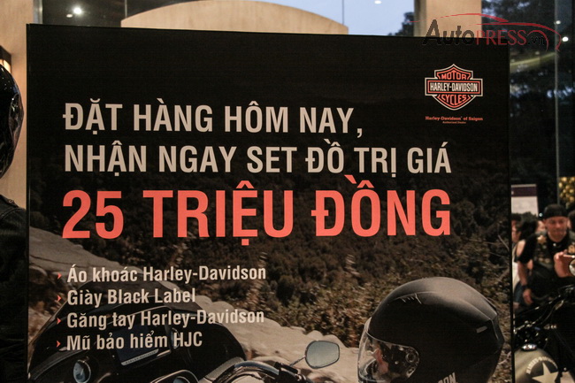 Nhân dịp ra mắt các dòng sản phẩm mới, Harley-Davidson cũng đưa ra gói khuyến mãi các phụ kiện bảo hộ cho khách hàng với tổng trị giá lên đến 25 triệu đồng.