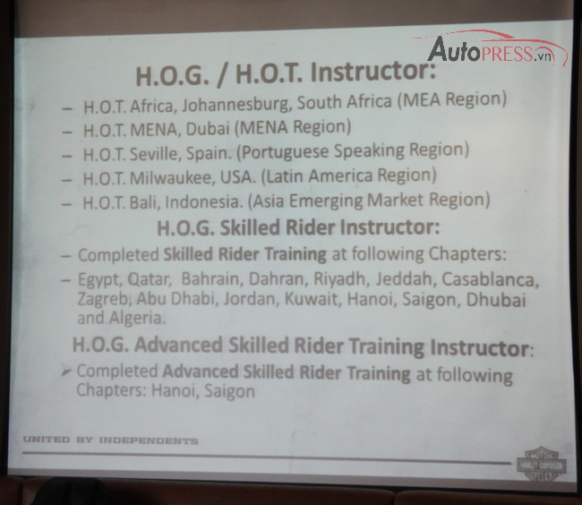 Thứ ba 04/08/2015 01:13 GMT+7Autopress.vn - Vừa qua, Harley-Davidson và H.O.G Sài Gòn đã tổ chức khoá đào tạo nâng cao kỹ năng lái xe mô tô phân khối lớn cho các thành viên. Lớp học này được hướng dẫn trực tiếp bởi chuyên gia Luis da Silva