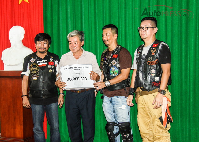 Ban chủ nhiệm H.O.G Sài Gòn trao tiền ủng hộ cho đại diện trường tiểu học Long Tân, tỉnh Bà Rịa - Vũng Tàu