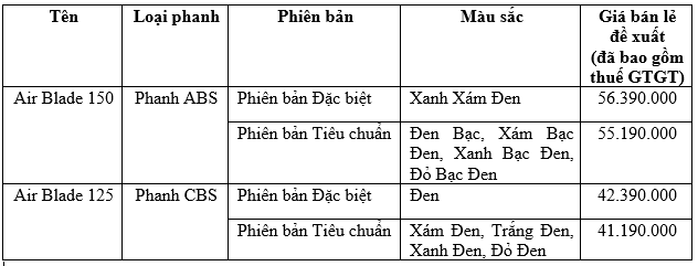 Air Blade 150cc/125cc phiên bản mới sẽ được chính thức bán ra thị trường từ ngày 9 tháng 12 năm 2020 thông qua Hệ thống Cửa hàng Bán xe và Dịch vụ do Honda Ủy nhiệm (HEAD) trên toàn quốc với chế độ bảo hành 3 năm hoặc 30.000 km tùy theo điều kiện nào đến trước.