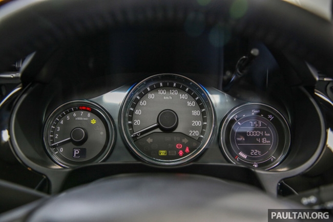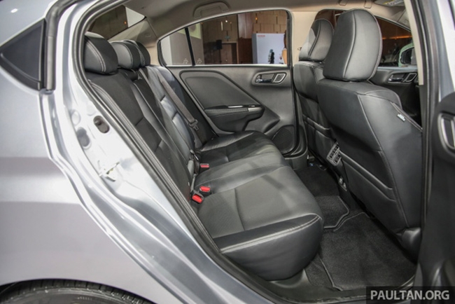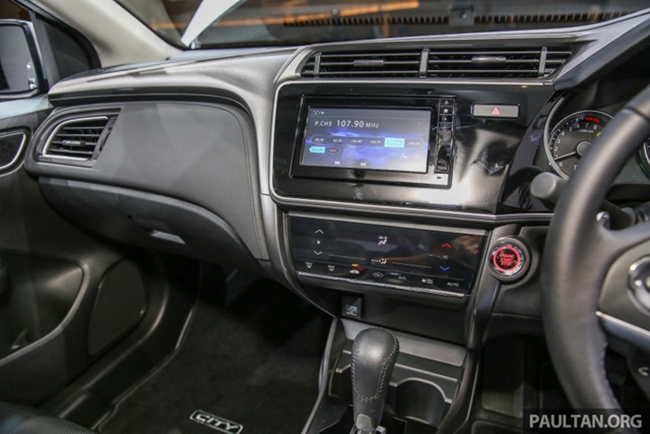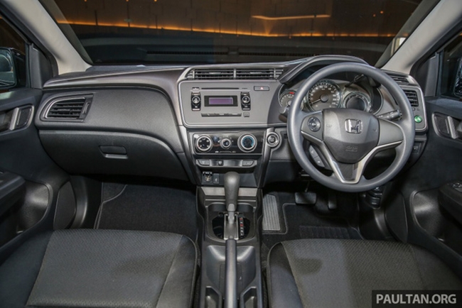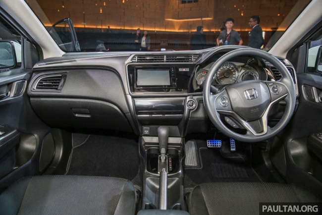 Trong khi đó, bản 1.5 E có thêm màn hình cảm ứng, cổng HDMI, điều hòa tự động được chỉnh bằng màn hình cảm ứng, hệ thống kiểm soát hành trình và lẫy chuyển số trên vô lăng. Riêng lẫy chuyển số trên vô lăng là trang bị mới dành cho Honda City 2017 tại Malaysia. Tương tự trước đây, bản tầm trung này cũng có gương chiếu hậu tích hợp đèn báo rẽ và bệ tì tay trước/sau.