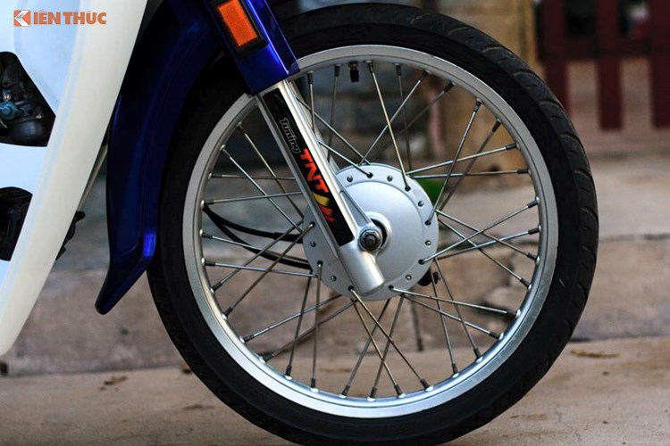 Dàn chân trước được đánh bóng lại vẫn giữ nguyên mâm vành nan nguyên bản, thêm bộ lốp mới trông nó đã "cứng cáp" và thể thao hơn rất nhiều.