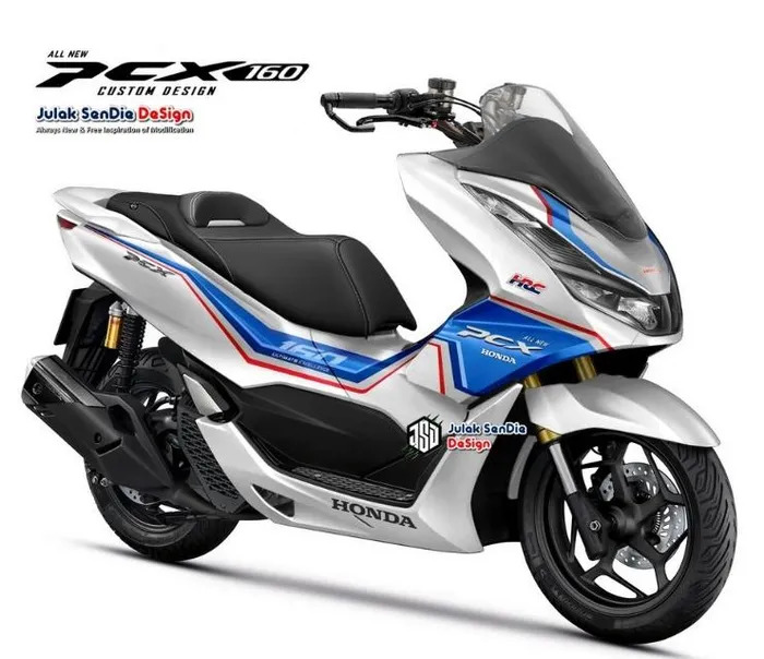 Bên cạnh phiên bản màu đỏ xanh đen thì bộ sưu tập Honda PCX 160 mới của Julaksendiedesign còn có thêm 2 lựa chọn là trắng và đen, cả hai đều đi kèm vành xe được sơn đen nhám. Tất cả các phiên bản PCX160 này cũng đều đi kèm họa tiết đặc biệt kèm bộ tem xe Honda Racing (HRC).
