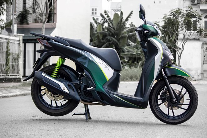 Chiếc Honda SH sản xuất trong nước, nguyên bản màu đen thuộc sở hữu của một người dùng là dân văn phòng ở Sài Gòn. Với ý tưởng làm mới chiếc xe với phong cách độc đáo nhưng không rườm rà, chủ nhân đã nhờ nhóm thợ độ sơn phối màu cho dàn áo đồng thời sơn tĩnh điện cho lốc máy và cặp vành.