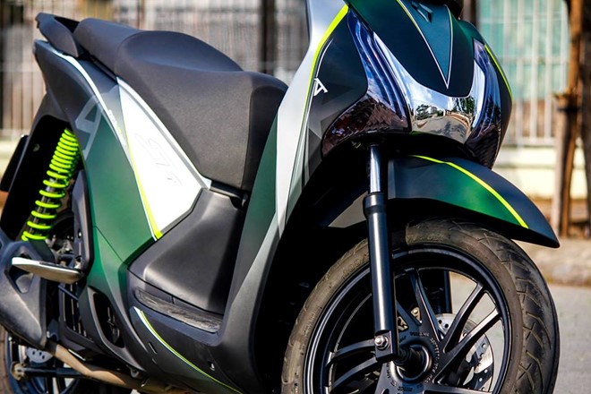 Dàn áo vẫn giữ tông màu đen chủ đạo nhưng thêm các mảng màu khác làm điểm nhấn như xanh Neon, xanh lá đậm cùng xám và bạc để tạo sự khác biệt. Xe sau khi phối màu được phủ lớp nhám cao cấp mịn giúp làm hạn chế độ bám bụi.