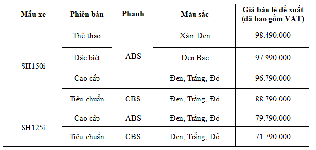 SH150i mới được bổ sung thêm phiên đi kèm phanh ABS với màu xám bóng hoàn toàn mới thừa hưởng nét thể thao và sang trọng từ SH350i, được định hình là bản cao cấp nhất trong dải sản phẩm của HVN nhằm hướng đến tập khách hàng trẻ.