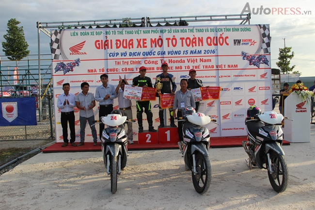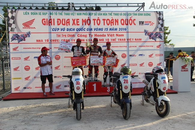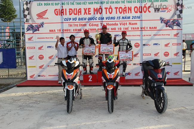 Thứ ba 03/01/2017 23:00 GMT+7Tham gia thi đấu lần này, các tay đua tham gia so tài tại 3 hệ thi đấu gồm 12 vận động viên hạng đua Blade 110 bán chuyên, 12 vận động viên hạng đua MSX 125 bán chuyên và 16 vận động viên hạng đua WINNER 150 chuyên nghiệp hứa hẹn những màn rượt đuổi kỹ thuật và gay cấn đến cho các khán giả trên sân đua Duy Thái. Đây là sân đua hoàn toàn mới được xây dựng từ tháng 5/2016 theo mô hình sân đua Nhật Bản với tổng chiều dài là gần 1.200 m và diện tích là 6 ha.