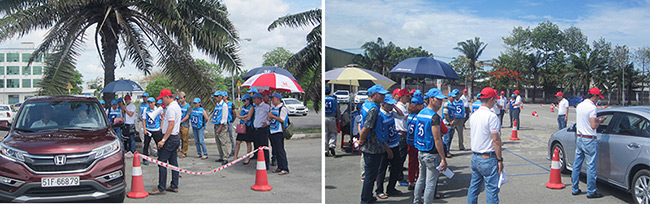 Đào tạo thực hành: không khí trở nên thực sự sôi nổi khi bước vào phần đào tạo thực hành. Sau khi được hướng dẫn một số thao tác cần thiết trước khi lái xe như: Kiểm tra xe, Điểm mù và cách lên xuống xe an toàn, Cảm nhận không gian xe và tư thế lái xe an toàn, các thí sinh đã hào hứng khi được đào tạo và thực hành các tình huống “Đỗ xe vào gara & Ghép xe vào ô đỗ”, “Kỹ thuật cua cọc tiêu thẳng”, “Phản xạ với tình huống nguy hiểm”, “Kỹ thuật phanh trên đường trơn trượt” và “Bài tổng hợp Fi-A (Cảm nhận góc lái)”.