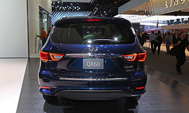 QX60 được thiết kế với phần lưới tản nhiệt, cụm đèn pha bi-xenon có tích hợp đèn LED chạy ban ngày, đèn sương mù dạng LED cùng nhiều chi tiết được mạ crôm và có cả ăng-ten hình vây cá mập.