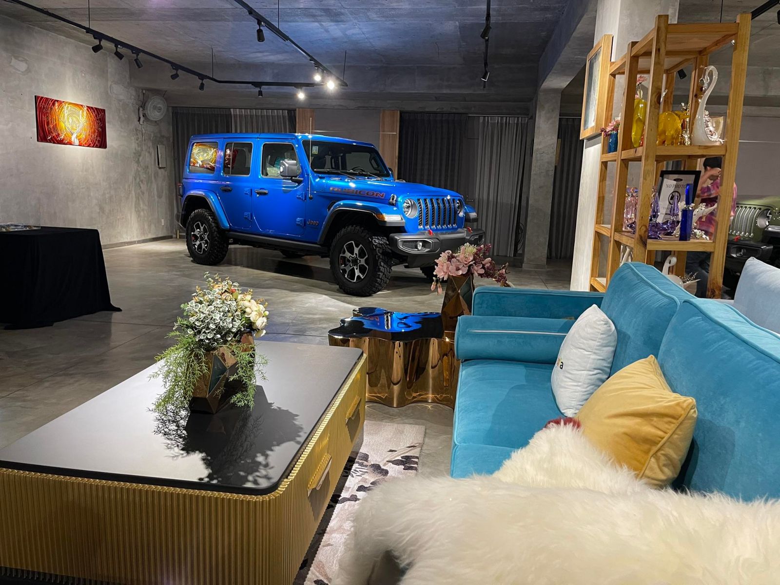 Khu trưng bày là một điểm đến điểm đến mới lạ, với hình thức trưng bày phối hợp với các sản phẩm nội thất giải trí cao cấp. Đây là showroom trưng bày xe, kết hợp với vật dụng trang trí nội thất sang trọng, giúp khách hàng có cảm giác thoải mái, như đang nhìn thấy xe Jeep đang đặt tại căn nhà của mình. Chính điều này sẽ giúp khách hàng cảm thấy gần gũi và yêu thích thương hiệu hơn.