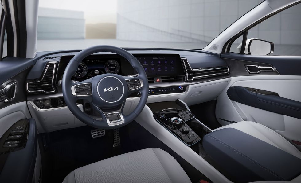 Nội thất Kia Sportage thế hệ mới được thiết kế lại tăng nét lịch lãm, với phần ấn tượng nhất chính là màn hình trung tâm giải trí liền mạch với các đồng hồ đo chỉ số xe, và đặc biệt nhất chính là cần số xoay. Điều này cho phép chỗ ghế lái và ghế phụ trước trở nên rộng và hiện đại hơn.