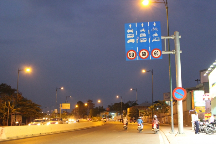 Đang "mát ga", tôi vội vàng đạp phanh dúi dụi khi chợt nhìn thấy biển hạn chế 60 km/h ở tít xa ngoài lề đường, thì ra đến một nơi đường giao cắt. Ngã tư này không có đèn đỏ, còn phía bên kia ngã tư, rất nhiều CSGT đứng chờ sẵn để phạt những tài xế chạy quá tốc độ.